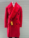 Mens Double Breasted Red Overcoat with Bold Red Faux Fur Collar – Alberto Nardoni Luxury Winter Coat