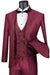 Mens Fancy Vested Mandarin Collar Tuxedo Suit in Burgundy
