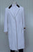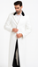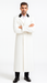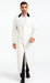 The crisp white color enhances its modern and polished look, while the length provides both warmth and an authoritative presence. Whether worn open or buttoned up, the coat creates a striking and dignified profile.