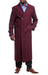 Men's Full Length Overcoat Burgundy Wool Double Breasted Trench Coat