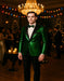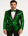 Men's Green Sequin Tuxedo Jacket with Black Satin Lapel and Bow Tie – Sparkling Party and Stage Blazer By Alberto Nardoni