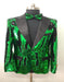 Turn heads and steal the spotlight with this Men's Green Sequin Tuxedo Jacket, designed for high-impact entrances at parties, stage performances, red carpet events, and fashion-forward celebrations. Covered in shimmering green and black reversible sequins, this jacket reflects light with every move, making it an ideal choice for men who want to stand out in style.