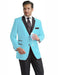 • Sky Blue Two Button Notch Party Suit & Tuxedo & Blazer w/ Black Lapel-100% Light Weight Polyester - very durable and easy to clean, black acetate inside body lining.