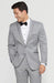 Men's Light Grey ~ Gray Silver Satin-detailed tuxedo suits Jacket , Pants Suit Silver
