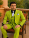 Men's Lime Green Three-Piece Suit with Floral Tie – Slim Fit Tuxedo for Weddings & Parties