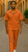 This walking suit can be worn as a full set for a polished, monochromatic look, or you can mix and match the pieces for added versatility. Pair the coral shirt with white, beige, or light grey linen trousers for a softer contrast, or style the pants with a crisp white guayabera or casual dress shirt for a refined casual outfit.