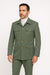 Designed in a rich olive green tone, the jacket includes a wide notch collar, gold-tone embossed buttons, and precision stitching, giving it a classic safari appeal. The matching trousers are equally refined, complete with side buckle waist adjusters for a customized fit and crisp tailoring that flatters any physique.