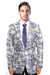 Looking for a sharp blazer that makes a quiet statement? This men's slim fit blazer from Tazio Suits pairs a striking brush stroke design with a tailored silhouette, in classic blue with silver accents. The single button, peak lapel adds a refined touch, perfect for dressing up or down.