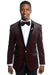 Looking for a tuxedo that makes a subtle yet bold statement? Tazio Suits brings you this men's single-button slim fit velvet tuxedo dinner jacket, blending classic style with modern flair. Crafted from textured velvet with a birdseye pattern, this jacket features a striking black and red color combo, perfect for dressy occasions. Its notch lapel and metal button detail elevate the overall look, giving it a refined yet contemporary edge. Designed for those who want to stand out without overdoing it, this blazer pairs well with formal trousers or sleek black dress pants.