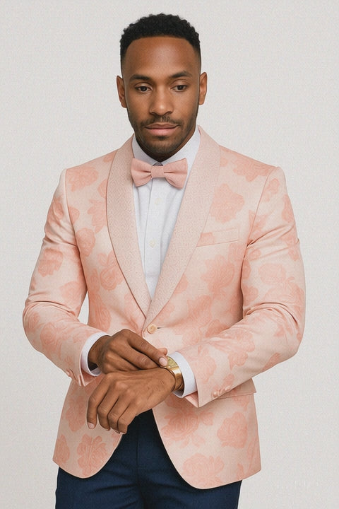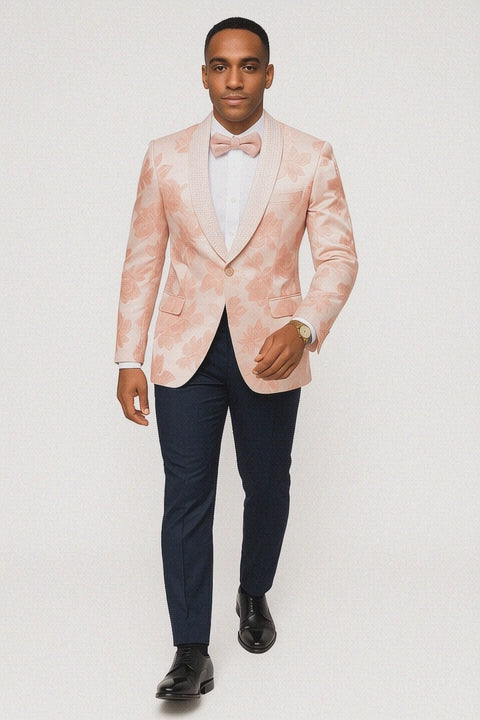 Mens Paisley Jeweled Shawl Prom 2025 Tuxedo in Blush Pink