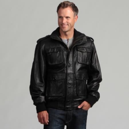 Men's Pig Napa Leather Big and Tall Bomber Jacket Black