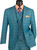 Mens Plaid Suits - Windowpane Pattern With Vest -Business Suit Navy