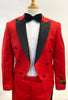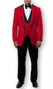Mens Prom 2025 Tuxedo Paisley Suit - Wedding Floral Suit- Red Wedding Jacket + Vest + Pants