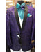 Men's Purple Floral Pattern Fashion big and tall Buttons Closure Black Satin Blazer