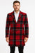 Mens Red and Black Plaid Wool Overcoat with Notch Lapel