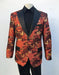 Men's Red and Gold Floral Pattern Flap Front Pockets Two Button Blazer