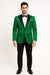 Men's Sateen Emerlad Green Tuxedo Jacket with Black Satin Lapel and Bow Tie – Slim Fit Prom and Party Blazer