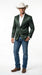 This menβs shiny dark green cowboy blazer is the perfect choice for those who want to combine western heritage with contemporary luxury fashion.