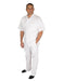 Men's Short Sleeve 100% Linen 2 Piece With Pleated Pant White Shirt Walking Leisure Suit
