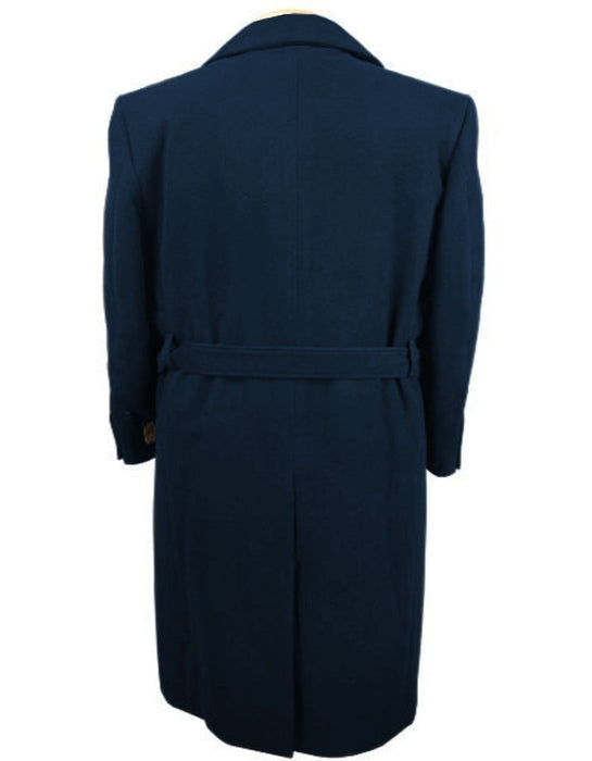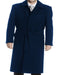 Mens Solid Navy 100% Wool Gabardine Belted Duster Overcoat