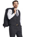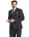 Men's Stacy Adams Peak Lapel Charcoal Grey Windowpane Dark Grey Suit