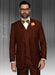 • Mens 2 Button Classic Fit Pleated Pant Suit with Double Breasted Vest in Copper