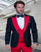 Mens Vested Contrast Peak Lapel Wool Wedding and Prom Tuxedo in Black and Red