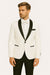 Mens White Swirl Embroidered Tuxedo Jacket with Black Satin Shawl Lapel and Matching Bow Tie