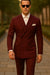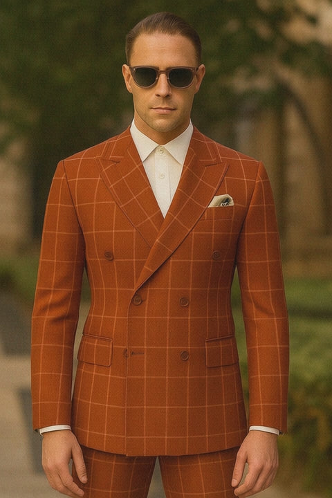 Men's Wine and Baked Apple Pattern Plaid ~ Windowpane Men's Double Breasted Suits Jacket Blazer ~ Sport Coat