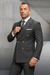 Mens 100% Wool 2 Piece Suit - Wide Peak Lapel Heather Charcoal