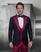 Mens Wool Vested Wide Contrast Peak Burgundy Wedding Tuxedo