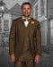 Mens 2 Button Classic Fit Pleated Pant Suit with Double Breasted Vest in Bronze