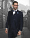 Mens 2 Button Classic Fit Pleated Pant Suit with Double Breasted Vest in Navy Blue