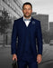 Mens 2 Button Classic Fit Pleated Pant Suit with Double Breasted Vest in Sapphire Blue