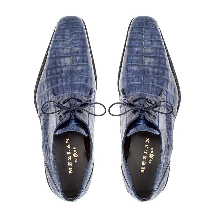 • Mezlan Anderson Crocodile Derby Shoes Blue