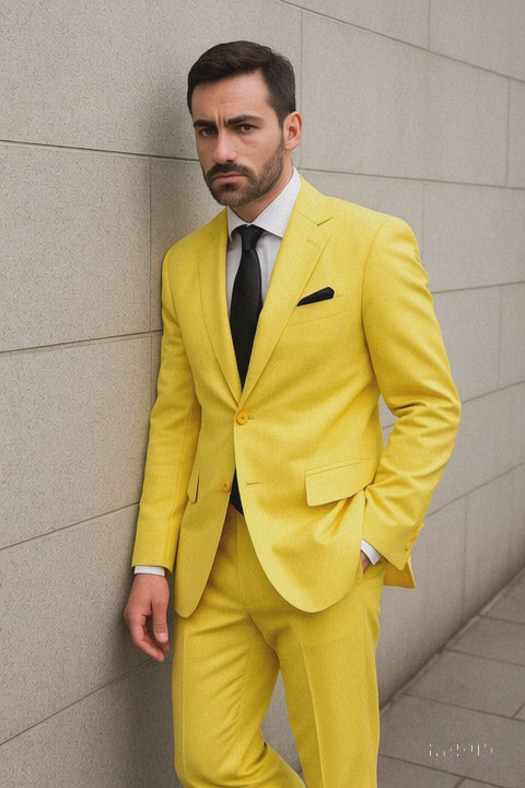 Bring bold confidence and contemporary flair to your wardrobe with the Men’s Mix and Match Two Button Yellow Suit Separate. Designed for versatility and comfort, this vibrant yellow suit allows you to select any size jacket and pants separately, ensuring a perfect tailored fit for every body type. Whether you’re making a statement at a formal event, adding color to your professional wardrobe, or standing out at a wedding or party, this suit delivers style that turns heads.