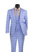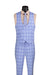 Modern Fit Windowpane Suit 3 Piece with U-Neck Vest in Light Blue