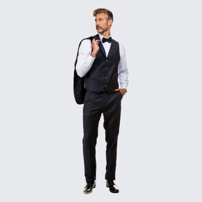 Navy Tweed Suit Three Piece Set - Wedding - Prom
