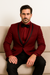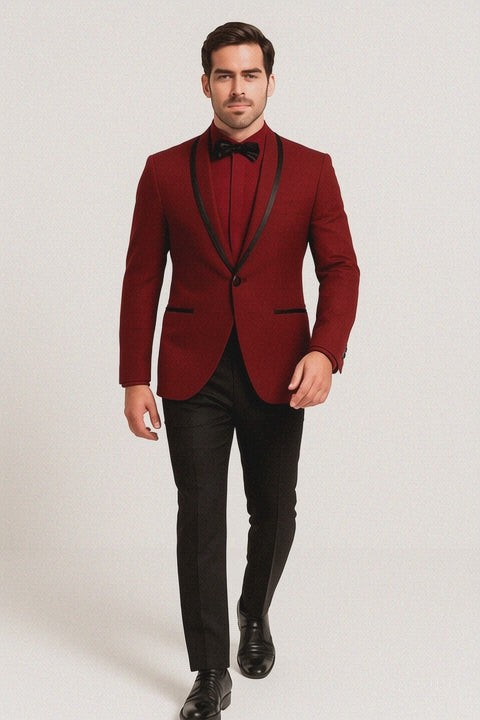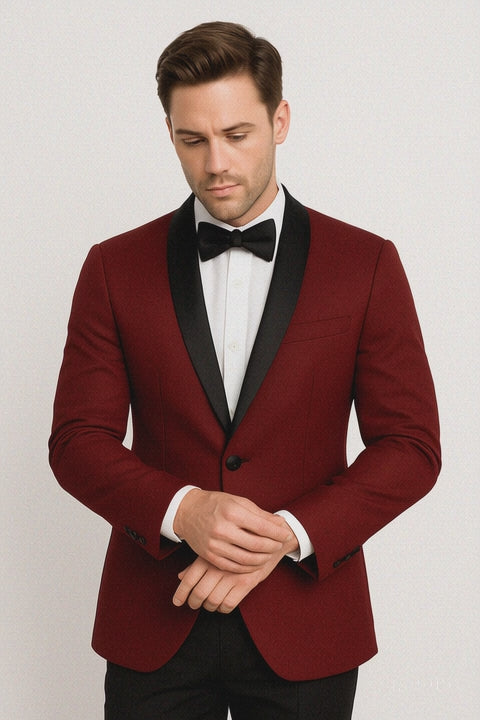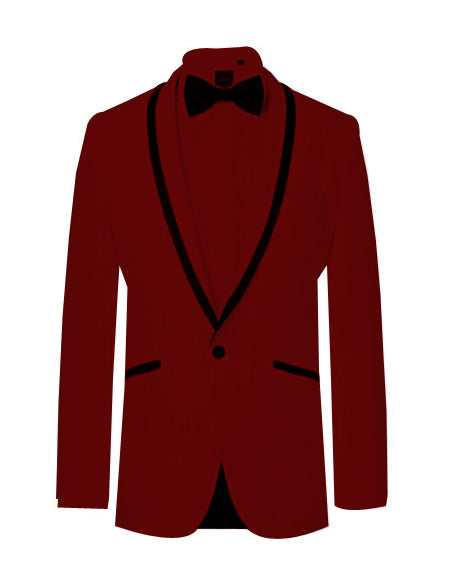 Prom 2025 ~ Wedding Tuxedo Dinner Jacket Burgundy and Black Trim