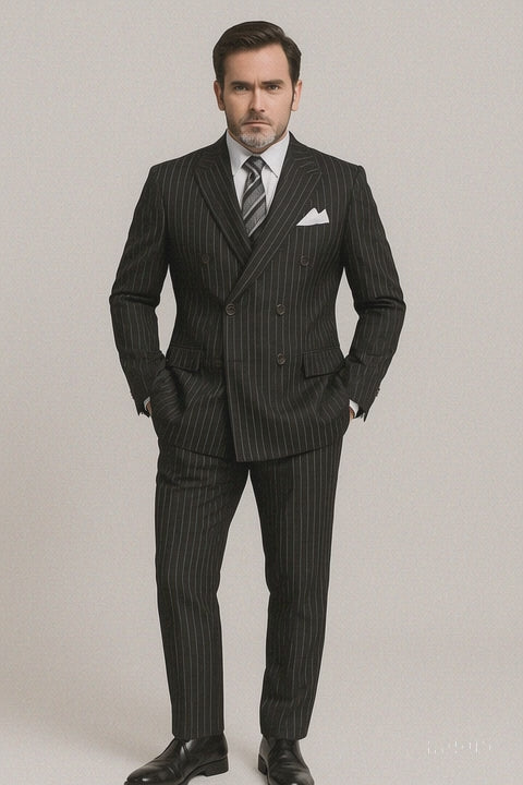 Rockefeller Collection - Double Breasted Stripe Suit Black Regular Fit 2 Piece