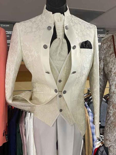 Rossi Man BOND RM1770 Slim Fit 3-Piece White Suit – 1-Button Peak Lapel, Stylish Men’s Formalwear