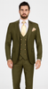 This hunter green 3-piece suit can be styled in countless ways to suit your occasion. Pair it with a white dress shirt and a burgundy or gold tie for a bold, classic look. For a modern approach, go tieless with a crisp shirt or even a black turtleneck for an effortless, fashion-forward edge. Its deep green tone complements a range of skin tones and exudes understated luxury that stands apart from conventional formalwear.