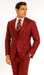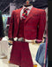 What truly makes this Rossiman suit unique is its red and blue plaid windowpane pattern. The contrast of deep red tones with sharp blue accents creates a visually striking yet sophisticated appearance. This color combination is bold but tasteful, ideal for men who are unafraid to stand out and showcase their personal style. It’s an excellent alternative to traditional black, navy, or gray suits, offering something fresh while still maintaining elegance.