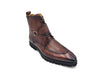 Rugged Split Toe Fall boot with lightweight lug sole. Feature lace-up closure with buckle slap cross front, side zipper for easy access. Soft burnished leather upper, leather lining and lightweight lug sole. KB480-03