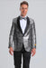 Silver Paisley Suit - Floral Suit - Solid Black Pants + Bowtie
