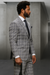 Statement Suits - Wool Suits - Peak Lapel Suits - Ticket Pocket - Modern Fit - Grey Plaid Suit