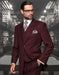 Mens 2 Button Modern Fit Vested Wool Suit in Burgundy