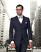 Mens 2 Button Modern Fit Vested Wool Suit in Navy
