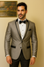 - Men's Grey ~ Gray Slim Cut 2 Button Trimmed Lapel Tuxedo Jacket