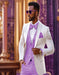 White and Lavender Tuxedo Wedding Suit - White Dinner Jacket + Vest + Pants + Bow-tie